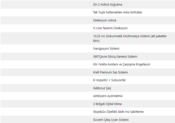 Comfort donanım yalnız şu temel özellikleri sunuyordu: 18inc alaşım jant, lastik basınç göstergesi, elektrikli ısıtmalı katlanır aynalar, LED gündüz farları ve halojen aydınlatma, arka park sensörü, tavan rayı, kol dayama, deri direksiyon, sürüş modları, start&stop, anahtarsız giriş-çalıştırma, hayalet ekran, 8inc multimedya ekranı, android auto&apple carplay, geri görüş kamerası, elektrikli park freni, yağmur sensörü, çift bölgeli dijital klima, normal hız sabitleyici.