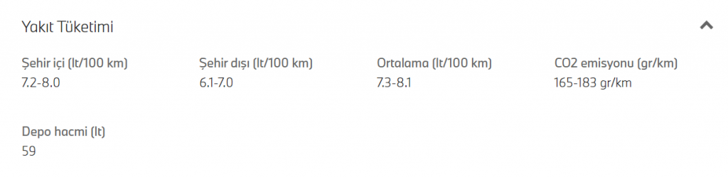 CO2 emisyonu (g/km) (ortalama): 165-183 gr/km